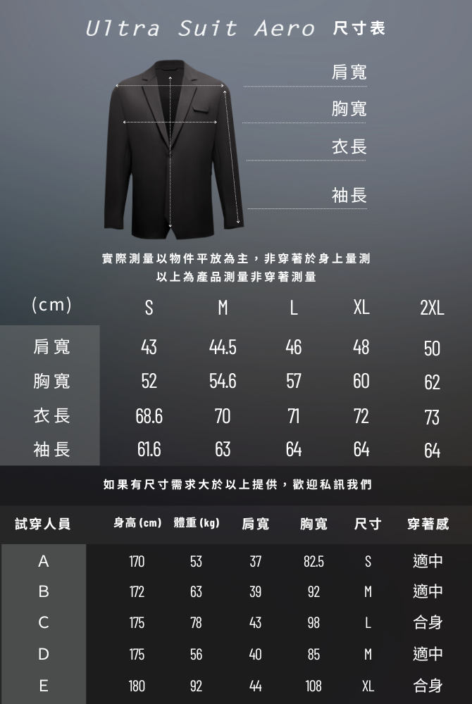 Ultra Suit Aero 尺寸表